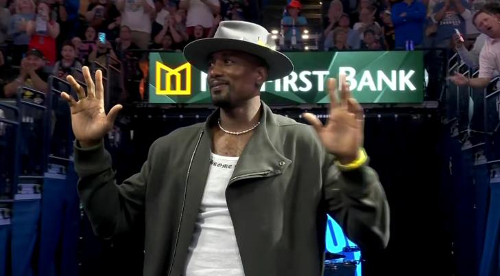 Before the game, the Thunder held a ring ceremony and raised their championship banner, with former players like Ibaka and Anthony in attendance. The Rockets returned to their locker room and did not watch the ceremony live.