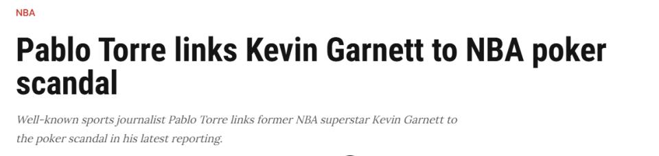On October 25th Beijing time, reporter Torre disclosed that ex-NBA player Kevin Garnett was involved in illegal poker games. Torre had earlier exposed Kawhi Leonard’s suspected contract manipulation.