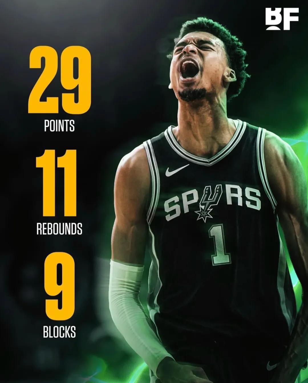 Wembanyama scored 29 points, grabbed 11 boards, and blocked 9 shots, almost achieving a triple-double, while our Big Tiger contributed 27 points, 10 rebounds, 7 assists, and 3 steals with a full stat sheet.