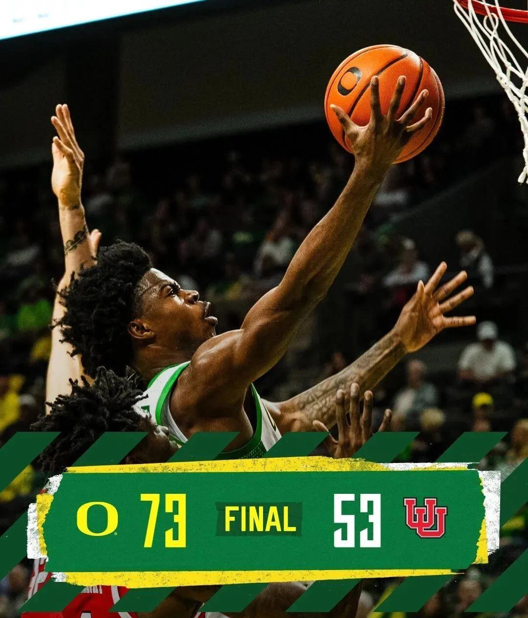Lin Wei made his debut after joining the University of Oregon, starting the game and playing 25 minutes, holding a key tactical role as the team's primary offensive initiator.He finished the game shooting 4-for-11 overall, including 1-for-3 from three-point range, and 1-for-2 from the free-throw line, contributing 10 points, 1 rebound, 4 assists, 2 steals, and 0 turnovers, with a plus-minus of +13.He led the team to a 73-53 victory over the University of Utah.