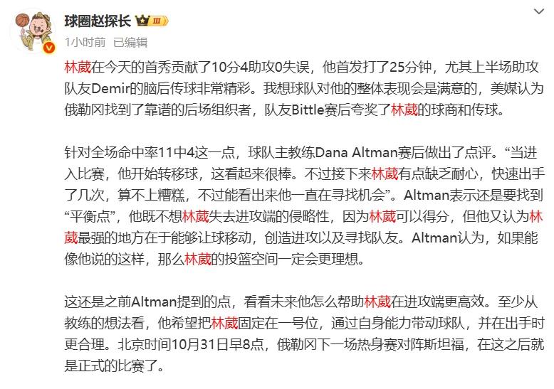After the game, Oregon's head coach praised Lin Wei but also "criticized" him for lacking patience, advising him to better balance his offensive organization.