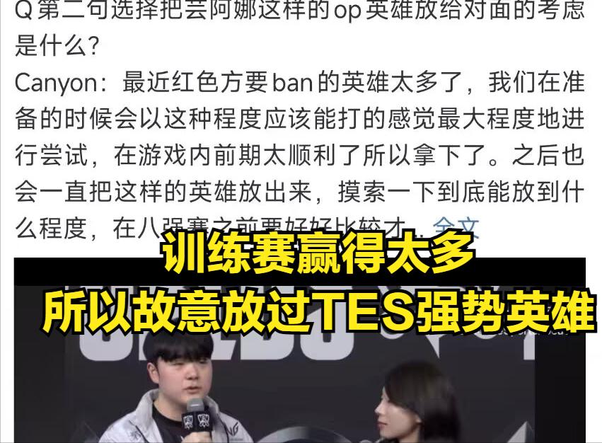 This statement from the GEN player frustrated many TES fans because when TES lost to KT previously, some fans blamed the coach’s poor drafting. Now, GEN’s coach willingly gave TES the strongest double carry champions in the meta, yet TES still couldn’t win. This highlights a significant skill gap between TES and GEN. Many LPL viewers also think Canyon is exaggerating and some even hope that if GEN faces AL in the future, they will also give AL Azir and Aphelios to see AL’s potential ceiling.