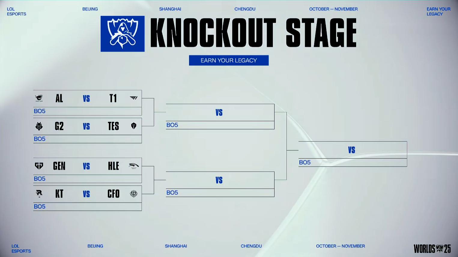 Home>lolNews> S15 knockout stage draw matchups: AL versus T1, TES versus G2 >