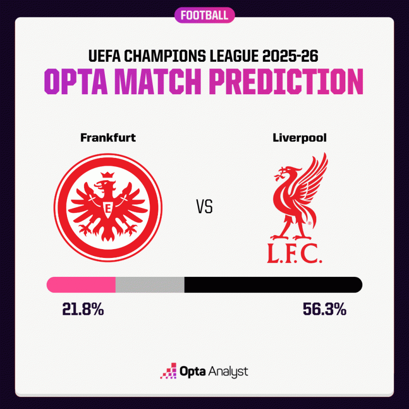 The Opta supercomputer has offered analysis and predictions regarding the UEFA Champions League encounter between Frankfurt and Liverpool.