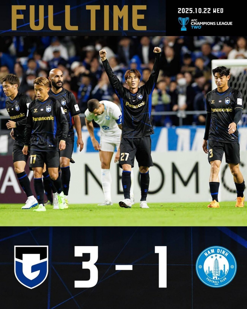 On the afternoon of October 22 (Vietnam time), despite suffering a 1-3 loss to Gamba Osaka in the third match of Group F in the 2025/26 AFC Cup 2, Nam Định still achieved a memorable milestone by scoring for the first time ever against a Japanese team in a continental competition.