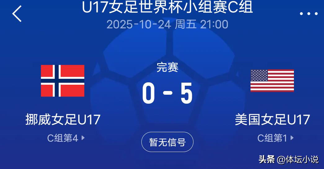 On October 25th Beijing time, the third round of Group C in the U17 Women's World Cup saw two matches finish. The Chinese team shone with multiple scorers to overwhelm Ecuador 4-0, and the USA played aggressively to thrash Norway 5-0. This led to the final group standings: the USA finished first with three straight wins, China qualified second with two wins and one loss, Ecuador placed third with one win and two losses, and Norway ended with three straight defeats, finishing last and eliminated!