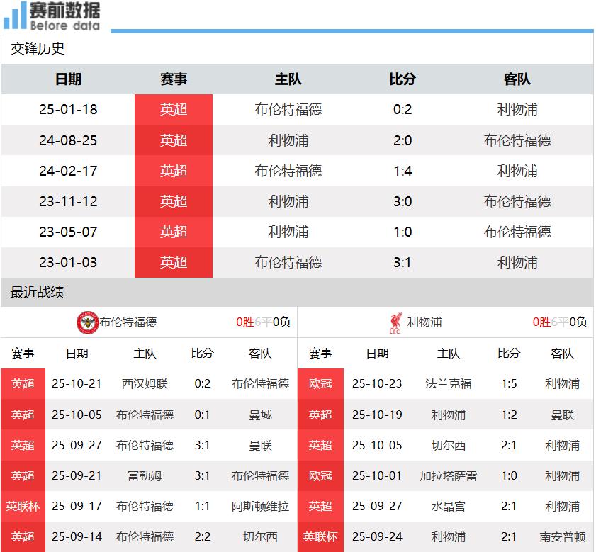 At 3 AM Beijing time on October 26, in the 9th round of the Premier League, Brentford will play host to Liverpool.
