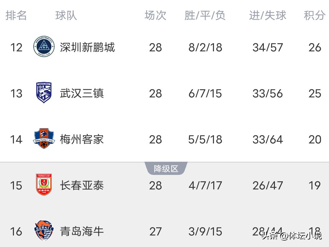 Home>soccerNews> With Yatai conceding a late equalizer to Tianjin to draw 2-2, what seemed like three points turned into just one, causing chaos in the relegation battle as the Chinese Super League standings were updated. >