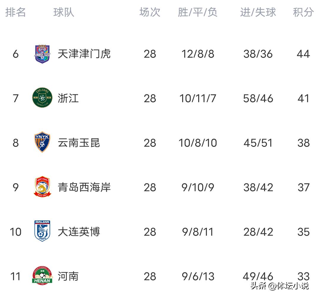 This round was extremely interesting as all top four teams stumbled. Haigang started strong but fell 1-3 to Shandong Taishan, losing control of the top spot and ending their four-game winning streak abruptly. After Haigang’s loss, they must have felt disappointed, giving Chengdu and Shenhua a chance to overtake. However, watching Chengdu and Shenhua’s matches later, Haigang must have felt relieved because both teams squandered their opportunities and were stopped by Qingdao West Coast and Dalian, each settling for 2-2 draws, directly trailing Haigang. Haigang benefited unexpectedly and held onto first place, which is quite unbelievable. Meanwhile, Beijing Guoan inexplicably lost to relegation-threatened Hainiu, a defeat that stunned and complicated the relegation battle!
