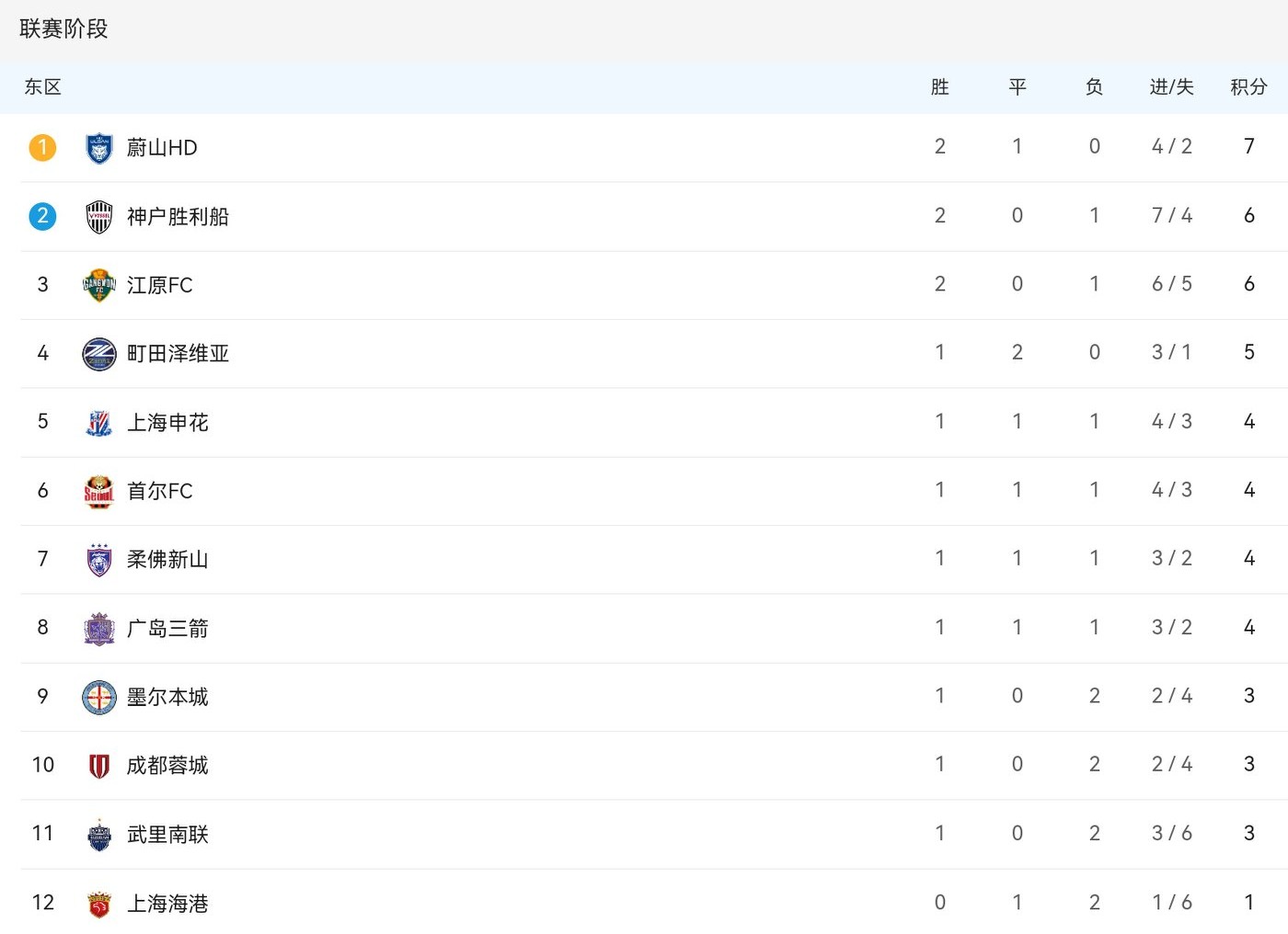 Attached is the latest AFC East Asia zone standings: among our domestic clubs, Shanghai Shenhua performed best, ranking fifth! Chengdu Rongcheng is tenth, while Shanghai Port performed the worst, failing to win a single match and sitting at the bottom. Shanghai Port is truly disappointing, even though they lead the Chinese Super League. From now on, I won’t support Shanghai Port because they only fight internally. We fans want them to compete against foreign teams, defeat opponents, and bring glory to the country!