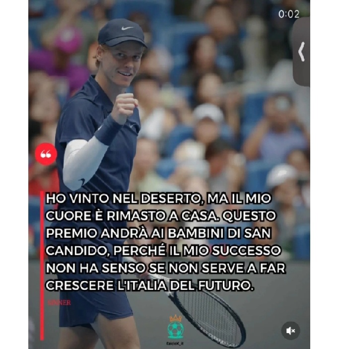 "San Candido is my hometown, where many children need help." When asked by the host during the Six Masters victory how he would use the prize money, Sinner mentioned "San Candido," leading many to guess he might donate part of the money to charity. Few expected he would donate the entire $6 million prize.