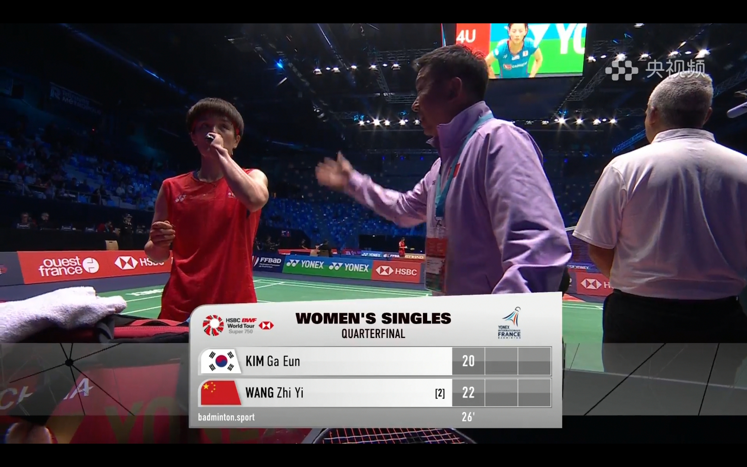 Latest update from the French Open Badminton: Team China holds a 2-1 record, with Chen Yufei winning. Live coverage is ongoing for Wang Zhiyi and Han Yue.