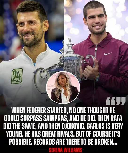 When asked if she believes Alcaraz can break Djokovic’s record of 24 Grand Slam titles, Serena Williams responded, “At this point, anything is possible.”