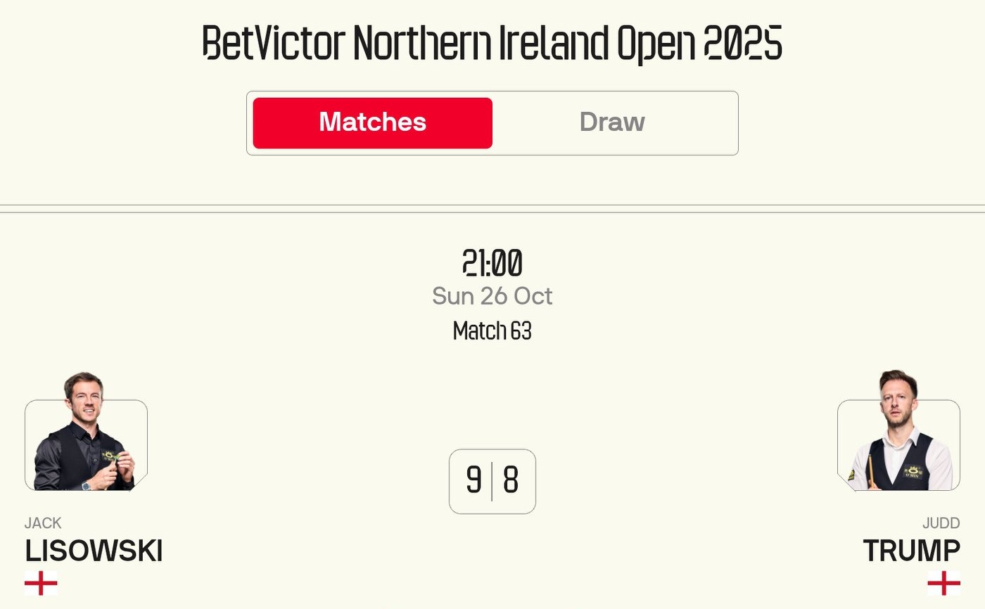 Latest news from the Snooker Northern Ireland Open: Lisowski defeated Trump 9-8 to claim the title, ending his long-standing runner-up status.