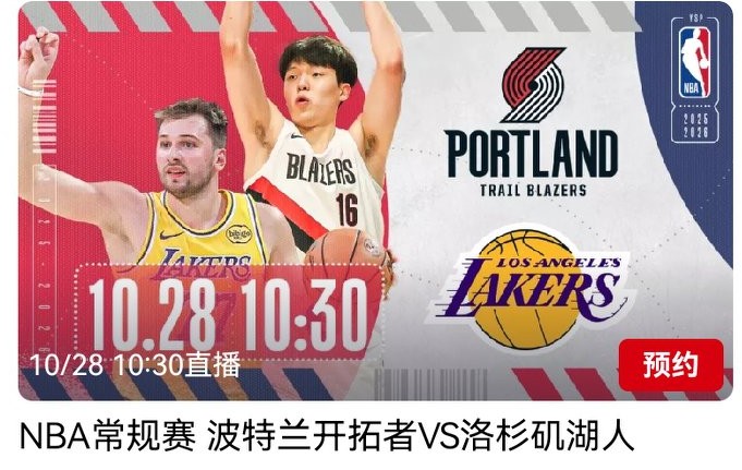 The NBA regular season game tomorrow (2025.10.28) will be Trail Blazers vs. Lakers, live on CCTV-5.