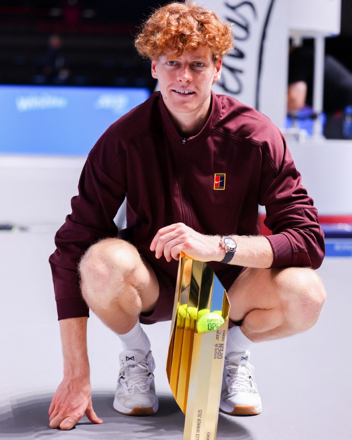 Last night Beijing time, the two ATP 500 indoor hard court events concluded spectacularly. In Vienna, top seed and world No. 2 Sinner overcame a thigh cramp in the deciding set to come back from 3-6, 6-3, 7-5 against second seed and German star Zverev, claiming the title for the second time after 2023. This marked Sinner’s fourth title this season and the 22nd of his career, closing in on Alcaraz’s 24 titles. After this match, Sinner and Zverev are now tied 4-4 in their head-to-head record.