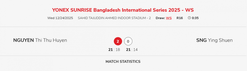 One of the brightest rising stars in Vietnamese badminton right now – Nguyễn Thị Thu Huyền continues to delight fans with an outstanding performance at the 2025 Bangladesh International Series held in Dhaka, Bangladesh from December 22 to 26.