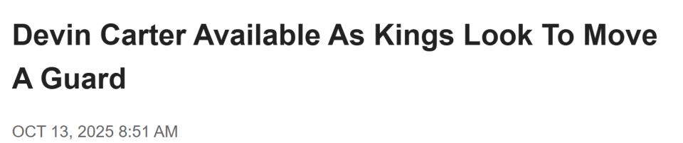 On October 13th Beijing time, reporter Stein stated that the Kings and Westbrook spent the entire offseason feeling each other out. Prior to signing Westbrook, the Kings want to create some room in their guard rotation. Devin Carter, the 2024 No. 13 pick, is viewed as the player most likely to be moved from that lineup.