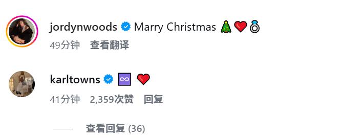 Towns and his girlfriend Woods revealed their engagement on Instagram, posting multiple pictures accompanied by a playful pun "Marry Christmas." The couple had been dating for five years prior to their recent engagement.