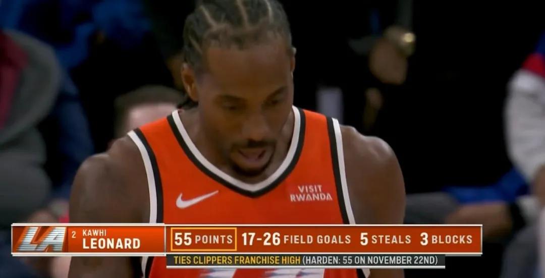 Leonard put up 51 points in just three quarters and ended the game shooting 17 out of 26, boasting around 65% shooting efficiency, dominating with 55 points, 11 rebounds, 2 assists, 5 steals, and 3 blocks to guide the Clippers to a 112-99 thrashing of the top Eastern team, the Pistons.