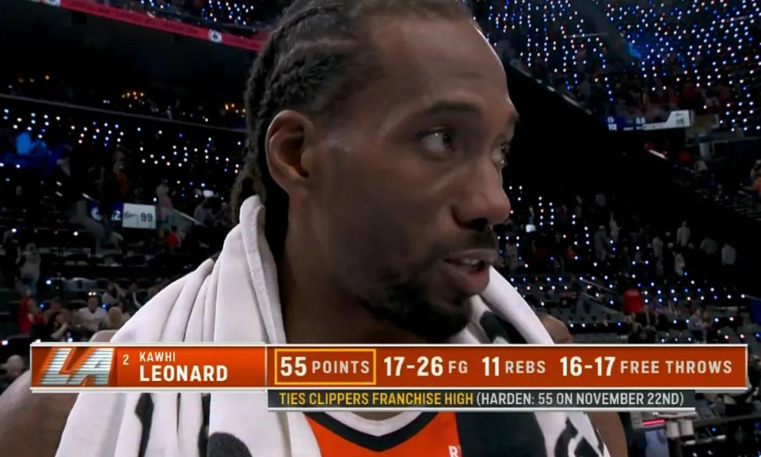 Before today, Leonard’s career scoring record was "only" 45 points, which is relatively low among superstars. This is partly due to his inconsistent attendance and partly because when Leonard is in great form, games often end early with no suspense.
