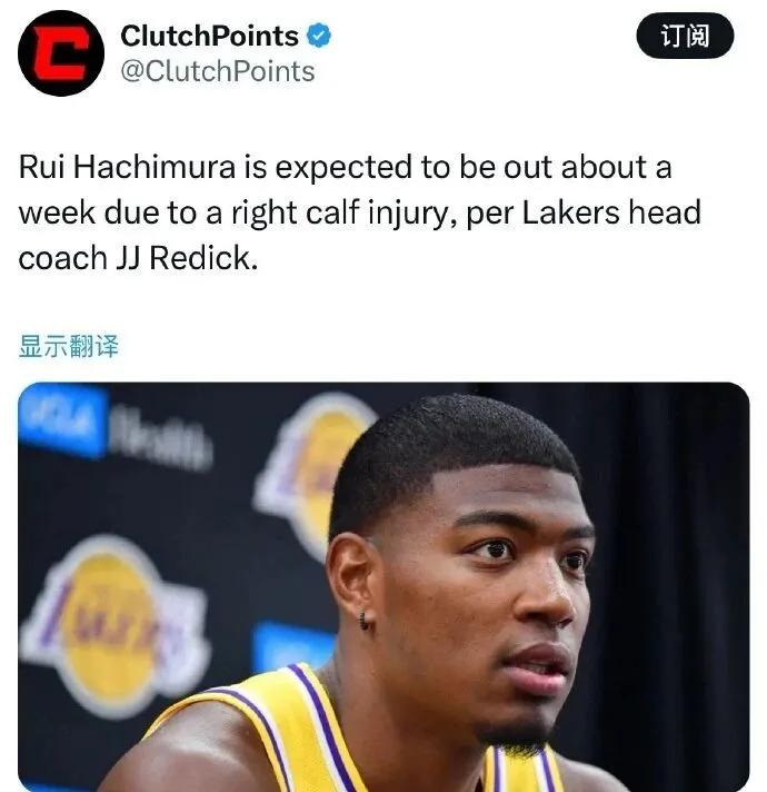Rui Hachimura suffers from right calf pain and is expected to be out for a weekThis guy is in a contract year this season, averaging 12.7 points and 3.8 rebounds so far, shooting 52.1% from the field, including 1.8 three-pointers per game at a 44.5% shooting percentage.
