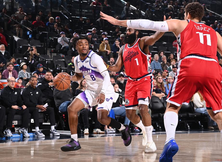 In the first quarter, the Clippers started perfectly. Harden scored 7 points through shots and free throws, Collins added a put-back, and Leonard threw down a dunk, leading the Clippers to an 11-0 run forcing a Jazz timeout. After the break, Leonard hit a three, Harden scored on a layup, extending the score to 16-0, prompting another Jazz timeout. Williams dunked to end the Jazz’s 5-minute scoring drought. Collier hit a three, Sensaabo dunked, cutting the deficit to 11. Little Jones and Niedhauser scored consecutively, Harden made a mid-range jumper, and the Clippers went on a 10-0 run, leading by 21 points. Lee Kyle completed a three-point play and followed with a mid-range jumper, the Jazz responded with a 10-3 run. The first quarter ended with the Clippers leading 31-17, Harden scored 11 points in the quarter.