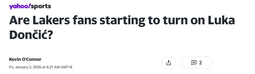 On January 2nd Beijing time, renowned journalist Kevin O’Connor remarked that the "honeymoon period" for Lakers superstar Doncic could soon conclude, with Lakers fans’ dissatisfaction rising.