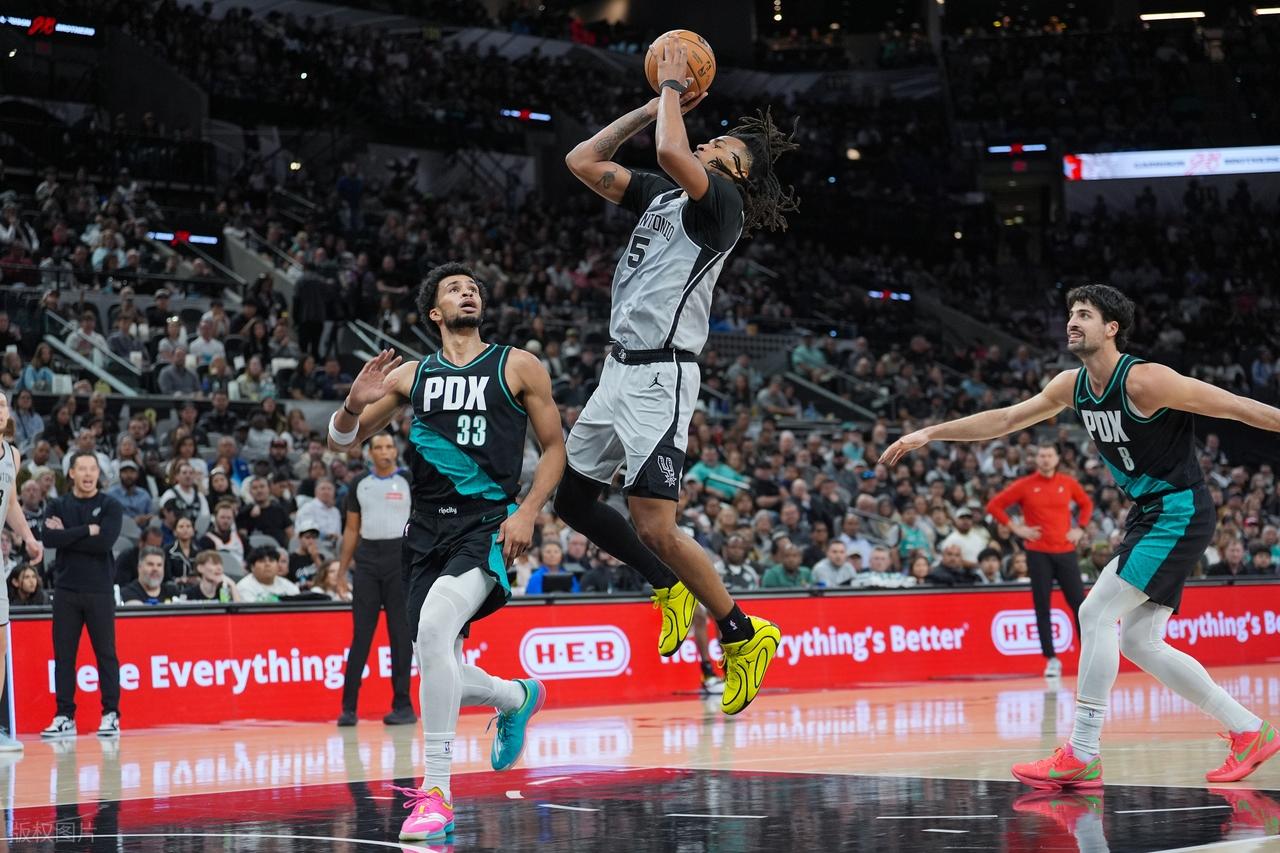 After halftime, both teams traded baskets back and forth. When Klingen made a turnaround hook shot, the score was tied at 65-65. Then, the teams exchanged three-pointers, with Murray, Barnes, Kamara, and Champagnie all hitting shots from beyond the arc, keeping the game tightly contested. Yang Hansen came off the bench again, quickly drew a foul, and made both free throws, then blocked Harper’s layup once more. At the end of the third quarter, the Trail Blazers held a 7-point lead. In the final quarter, the Trail Blazers started strong with consecutive three-pointers, quickly extending their lead to 13 points. The Spurs launched a comeback and closed the gap to 2 points when Cornette scored on a dunk. Near the end, the Trail Blazers hit more three-pointers while the Spurs kept pressing. In the final seconds, Avdija made a crucial three-pointer, and Love added points from free throws to secure the victory for the Trail Blazers.