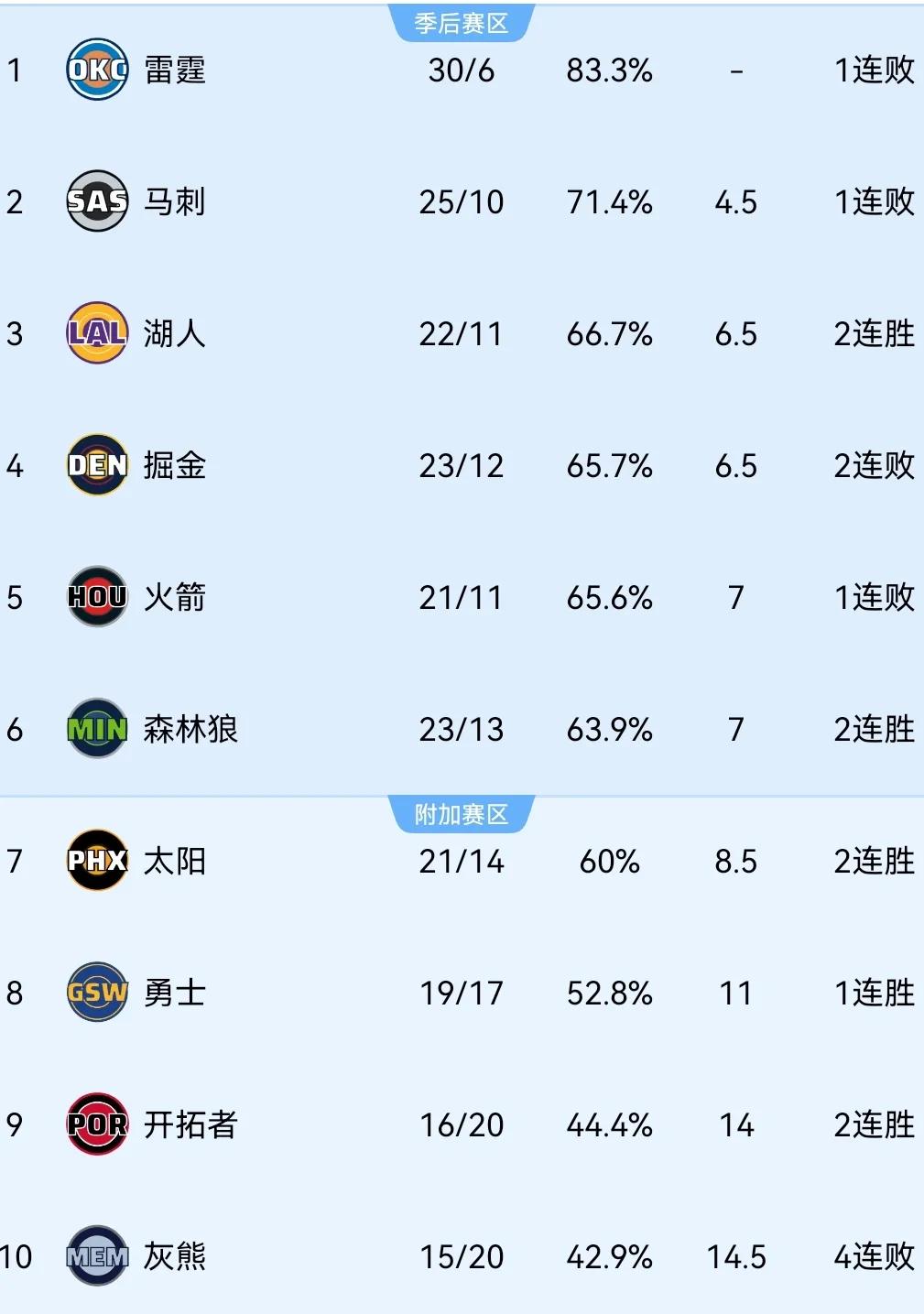 So far, the Suns hold a 21-14 record, ranking seventh in the West, trailing the sixth-place Timberwolves by 1.5 games, while the Lakers have improved to third place with a 22-11 record.