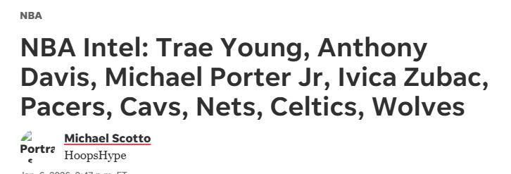 As of January 7th Beijing time, only one month remains before the trade deadline. HoopsHype, a well-known American media outlet, has gathered the latest trade news about stars such as Trae Young, Anthony Davis, Michael Porter Jr., Ivica Zubac, and teams like the Pacers, Cavaliers, Nets, Celtics, Timberwolves, Wizards, and Pelicans.