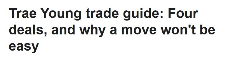 On January 7th Beijing time, insider Shams revealed that Trae Young's tenure with the Hawks is coming to a close, as both parties are discussing a trade to find him a new destination. ESPN subsequently outlined four potential trade scenarios involving Trae Young, as detailed below—