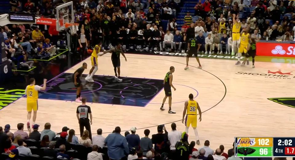 Facing the Pelicans on a six-game losing streak, the Lakers played very erratically through the first three quarters, leaking many open shots on defense and committing more ridiculous turnovers than their opponents. Early in the third quarter, LeBron sparked a comeback with four straight assists to take the lead, but Murphy scored 20 points in that quarter alone, handing out big gifts. After three quarters, the Lakers trailed the Pelicans by 7.
