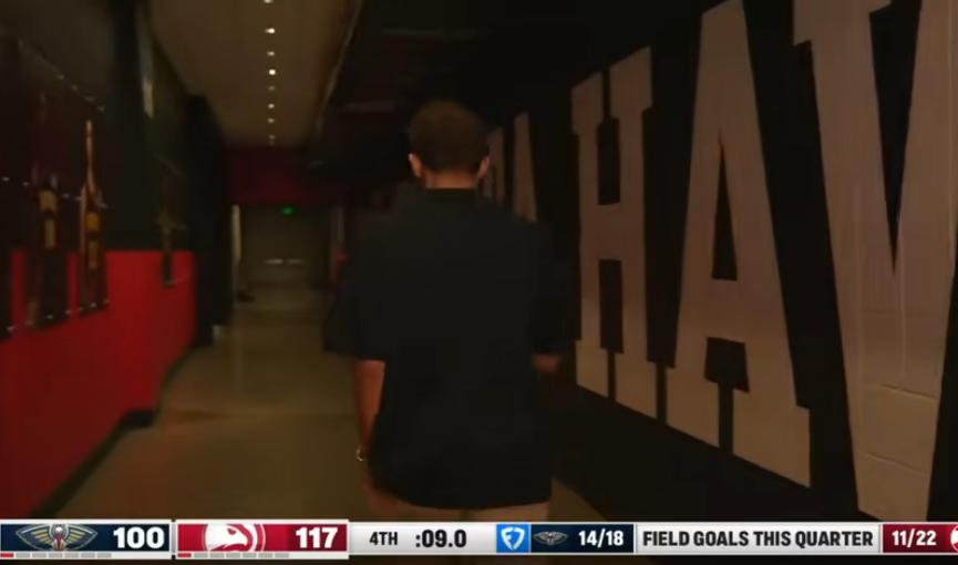Before the game ended, Trae Young said goodbye to teammates and fans along the sidelines, then headed toward the players' tunnel. High-fiving fans was his last gesture as a Hawk at this home court. The broadcast even stopped showing the game and focused on Trae Young in the tunnel.