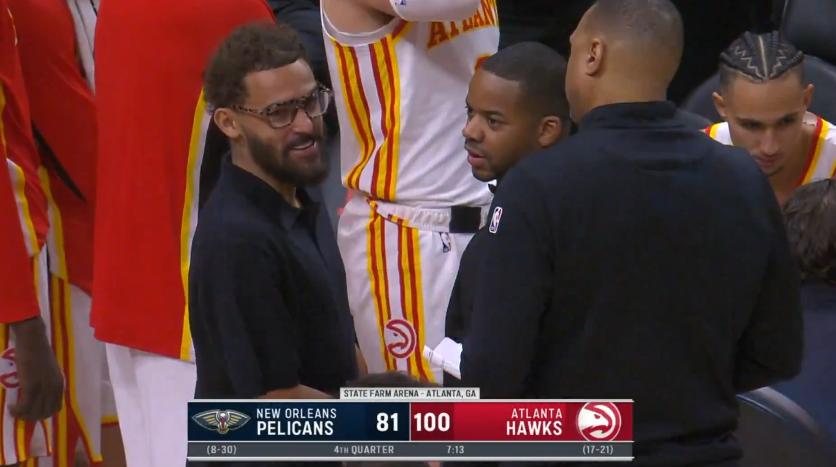 Both the Wizards and Hawks had games today; the Wizards finished earlier, and the trade news broke after their game ended. Meanwhile, the Hawks were still playing the Pelicans, and Trae Young was sitting on the bench. Upon hearing the news of his trade, Trae Young first stood up and went to the locker room, then returned to the bench.