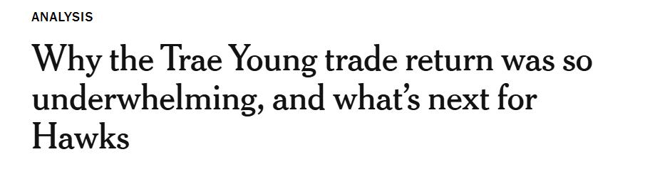 On January 8th Beijing time, a four-time All-Star who led his team to the 2021 Eastern Conference Finals and made the All-NBA team. Trae Young, considered the most potent offensive force in Hawks history, ended up being exchanged solely for an expiring contract (McCollum) and a reserve wing player (Kessler), without any draft picks involved. Why was his trade value so low? NBA analyst Hollinger provided an explanation—