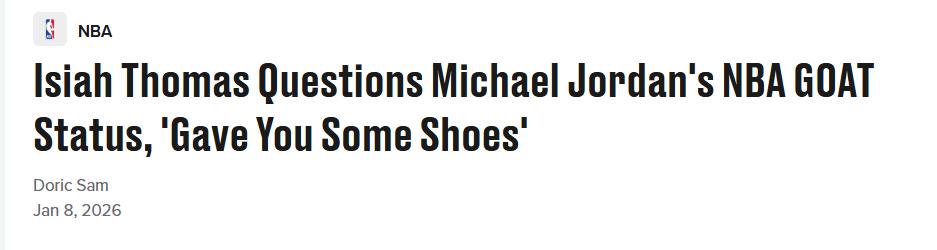 On January 9th Beijing time, Basketball Hall of Famer "The Smile Assassin" Isiah Thomas once again reignited the rivalry with legendary player Michael Jordan. While guesting on the program "Tracing the Roots," Thomas was questioned about the NBA golden era controversy, and he seized the moment to state plainly that LeBron James is the greatest player in history who has outdone Jordan.