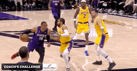 Monk made a 2+1 play, but the ball was called out of bounds on the Lakers; they challenged and won the call