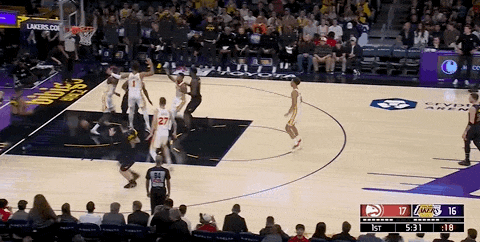 The Hawks scored 4 straight points, Doncic hit a three, prompting the first timeout. Hachimura came in, LeBron rested. After missing a three-pointer, Hachimura made a putback layup.