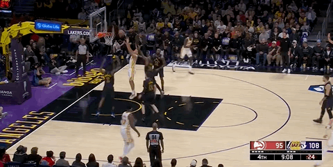 After the timeout, the Hawks continued hitting threes. LaRavia made a floater, LeBron seemed a bit hurt but it wasn’t serious, and he kept playing.