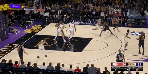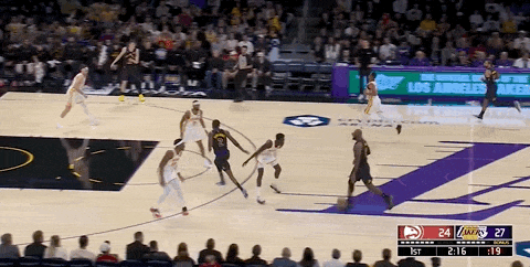 LeBron returned, LaRavia made a spectacular shot assisted by LeBron.