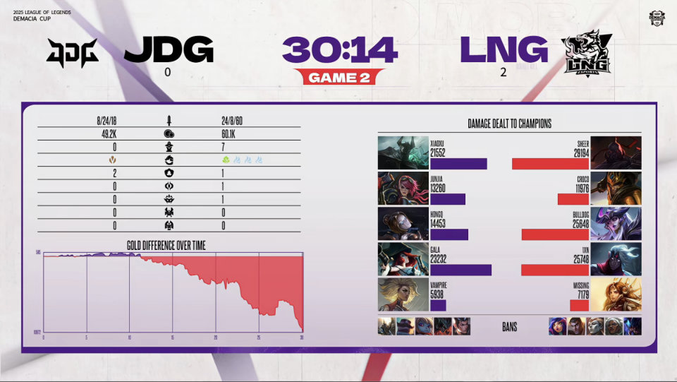 On the other side, JDG, led by Tabe with Gala, Junjia, and HongQ, has a lineup strong in both early and late game phases. Surprisingly, they couldn’t beat LNG and were also swept, which is really hard to explain—it’s like the money was wasted. Although it was just a BO3 loss and there’s still a long road ahead, it’s clear that these newly formed powerhouses must hurry up their synergy if they want to achieve good results!