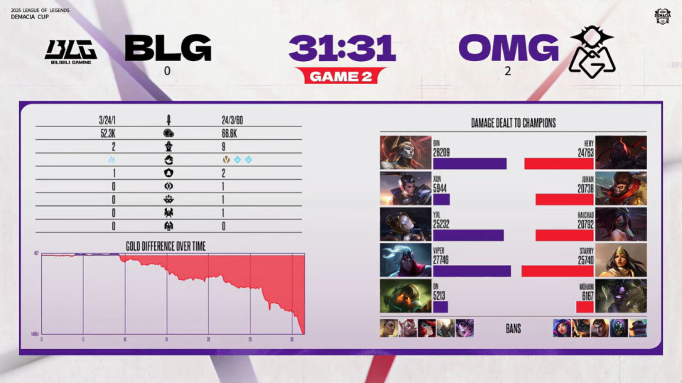 It’s worth noting that after this BO3, both MVP awards went to OMG’s mid laner Haichao, which might highlight the mid lane gap. If Knight had played, BLG probably would have dominated easily! But the Demacia Cup is meant for lineup trials, so let’s look forward to BLG’s full-strength performance in upcoming LPL events — their dominance will surely be at full throttle!