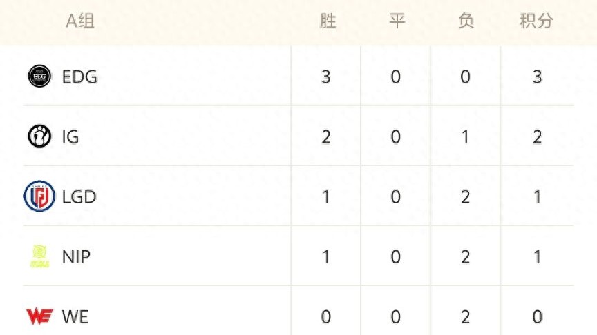 In the LPL Demacia Cup, the quarterfinal teams are about to be decided. Currently, EDG with a 3-0 record in Group A has secured advancement. NIP, ranked fourth with a 1-2 record, can only reach a maximum of 2 points regardless of the last match outcome, unable to catch or surpass EDG. Meanwhile, IG, sitting second with a 2-1 record, is halfway through securing a spot in the third stage; winning the last game guarantees advancement, while losing still leaves some uncertainty.