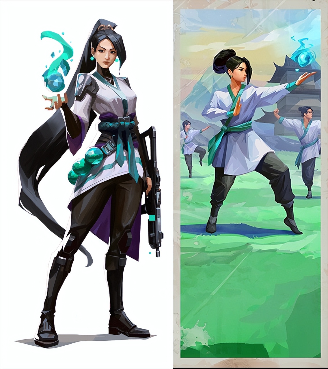 In her backstory, Sage spent years in a Taoist temple, so her outfit draws inspiration from Taoist training robes. Traditional long robes were impractical for combat, so designers shortened them to skirts, preserving Eastern charm while fitting tactical needs.