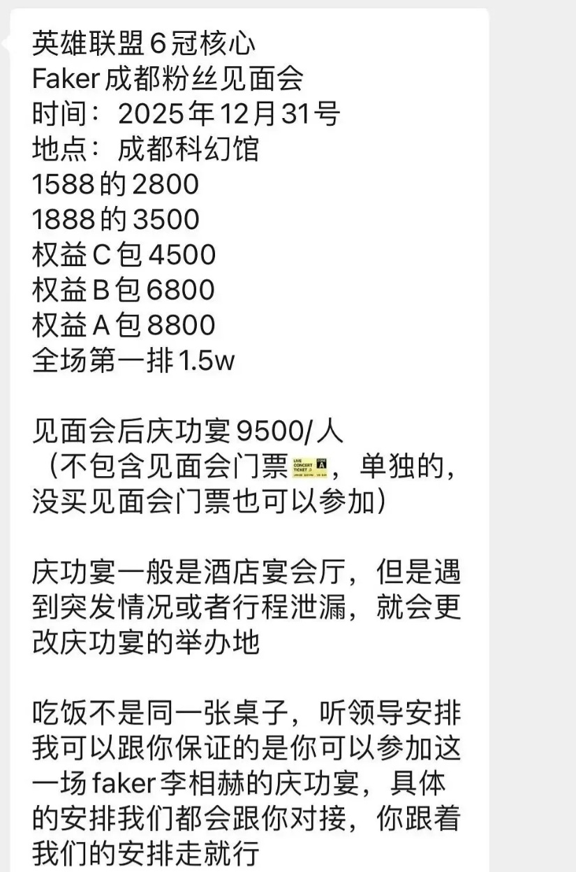 The key point is how many fans can attend the banquet and whether there are other perks. If the hotel limits the number of attendees, allowing close interaction with Faker, such as photos or autographs, the price might be justifiable. Without these, the pricing seems unreasonable.