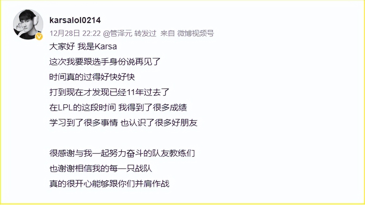 Karsa, who reached the World Championship last year, recently officially announced his retirement, ending his professional career. Unconsciously, Karsa has been a pro player for 11 years. Although his reputation slightly declined toward the end, his peak performance was undeniable. While with Flash Wolves, he repeatedly led the team to victories over LCK squads in Worlds. After moving to the LPL, he claimed league titles, an MSI championship, and even managed to leave RNG unscathed.