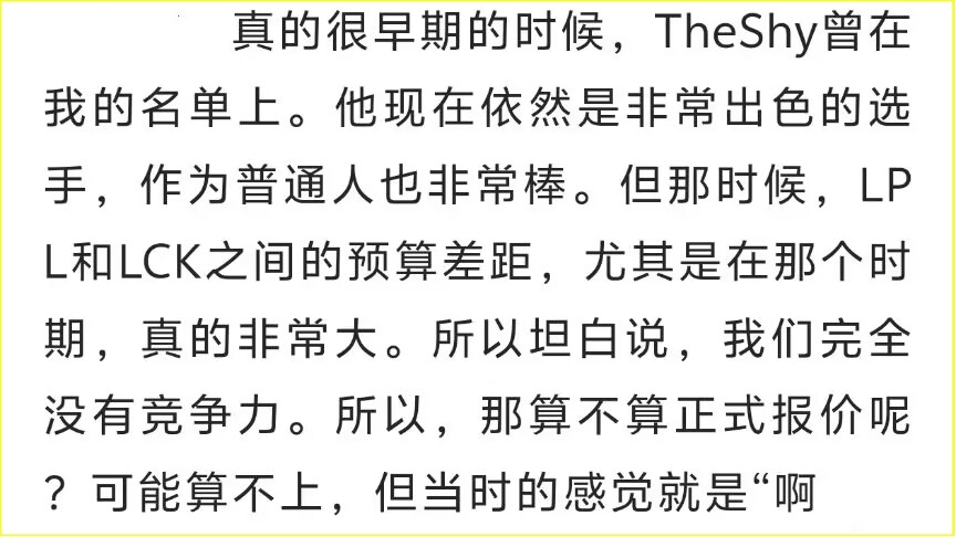 Additionally, GEN’s CEO disclosed that long ago, GEN wanted to sign TheShy, but at that time, the budget gap between LPL and LCK was huge, and GEN had no competitive advantage. So the deal didn’t go through. He was likely referring to IG after their S8 championship. Back then, Korean players’ prices were extremely high, while LPL was in its prime, and clubs were willing to spend lavishly.