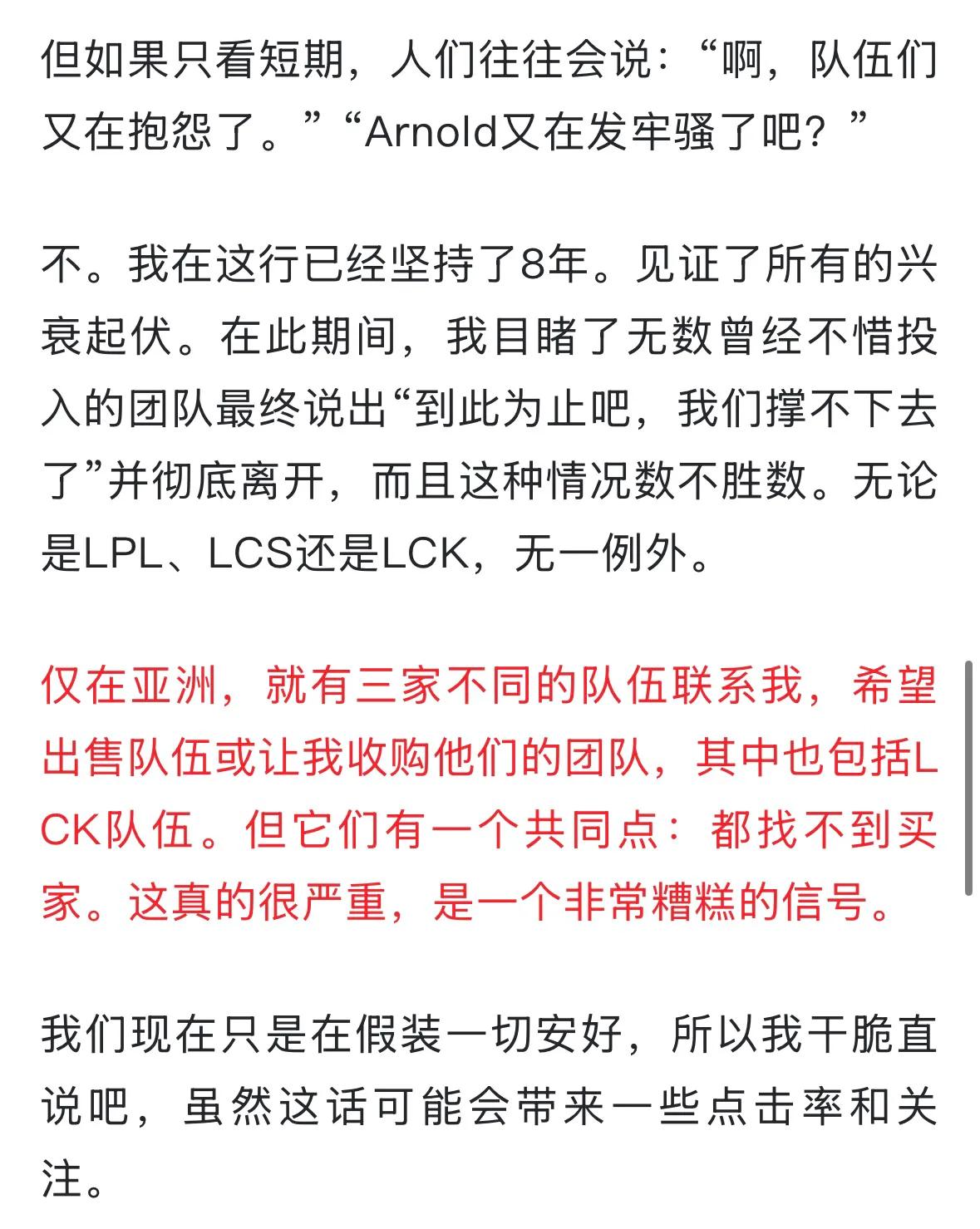 Most players are familiar with the LCK region, recognized as a world-class top-tier league. In recent years, LCK has developed rapidly and achieved remarkable success, winning the World Championship multiple years in a row. It was assumed their sponsorship and operations would run smoothly, but Gen's owner’s interview revealed all the inside stories. The crisis is not only severe in the LPL region; other Asian regions including LCK also face serious problems. If Riot does not make timely adjustments, League of Legends will face a deep winter.