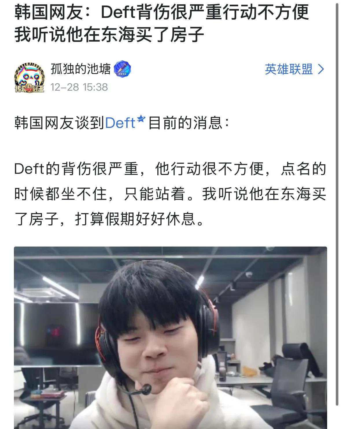 The departure of veteran players without fresh blood entering is currently the biggest problem in the league. Without popularity, there are no sponsors, and prize pools cannot be increased. Recently, former top AD player Deft returned home to start streaming, but his severe back injury prevents him from sitting for long even during military service, forcing him to rest at home. He had previously expressed intentions to return to the pro scene after military service, but given his current physical condition, it seems highly unlikely. This is undoubtedly a huge loss for both LCK and LPL, as veteran players bring great popularity and Deft is known as a clean, respected figure.